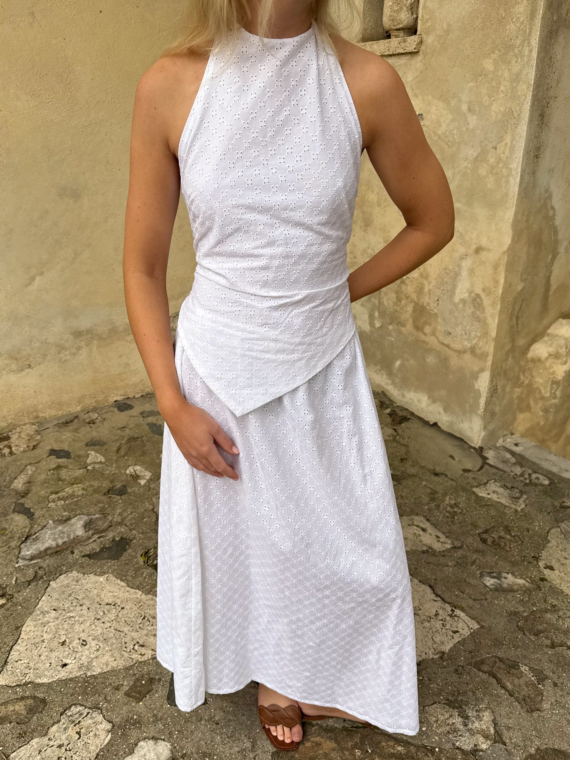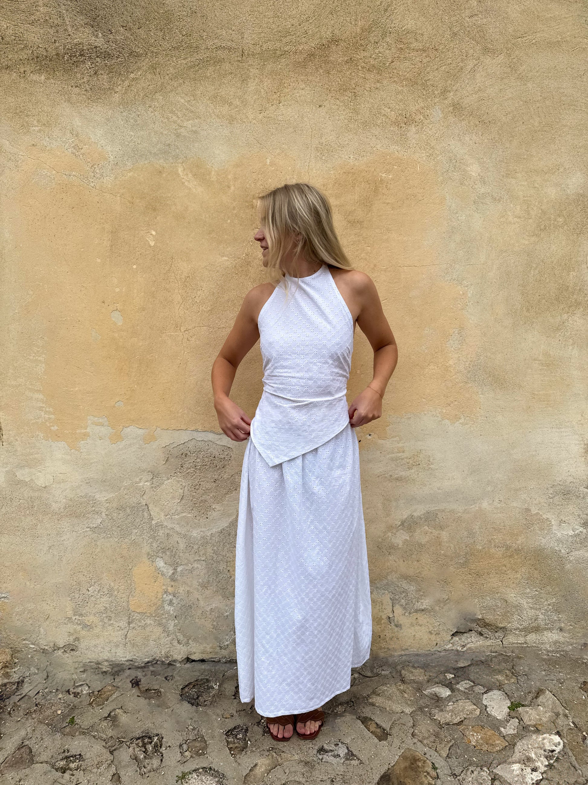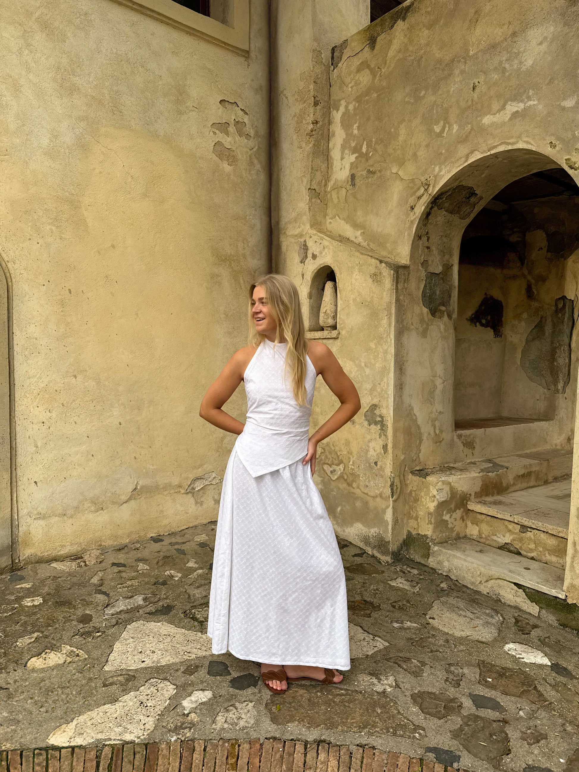 The Lais top is this summers cheekiest top. It has a back bow closure and is also available in brown linen. Match it with the Lais skirt to make it a whole set