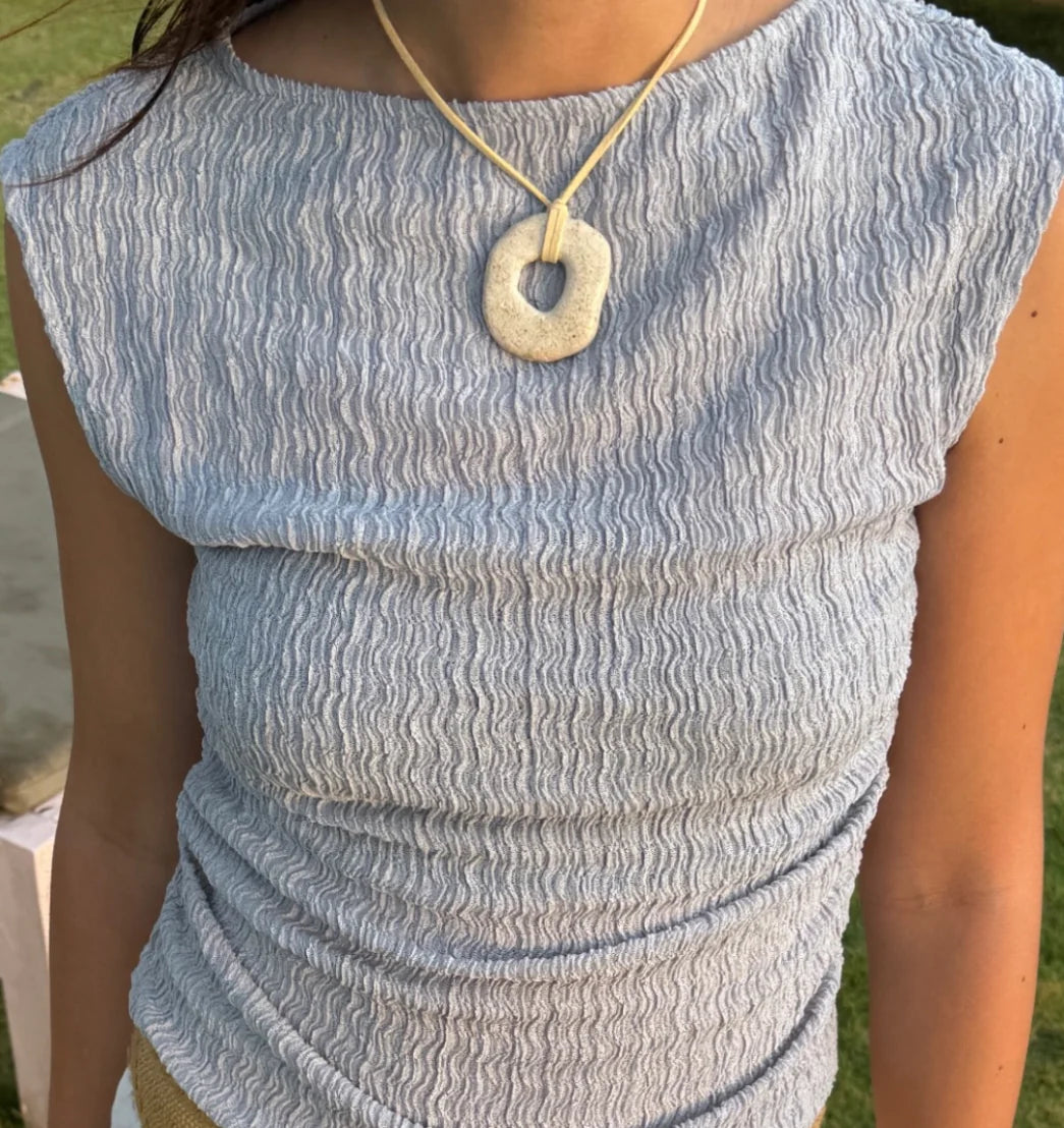 Minimalist and full of character, the Carla necklace evokes the raw beauty of Mediterranean nature. This handmade Jesmonite choker with sand by Leelo of MEEMO STUDIO will add an authentic touch to your looks.