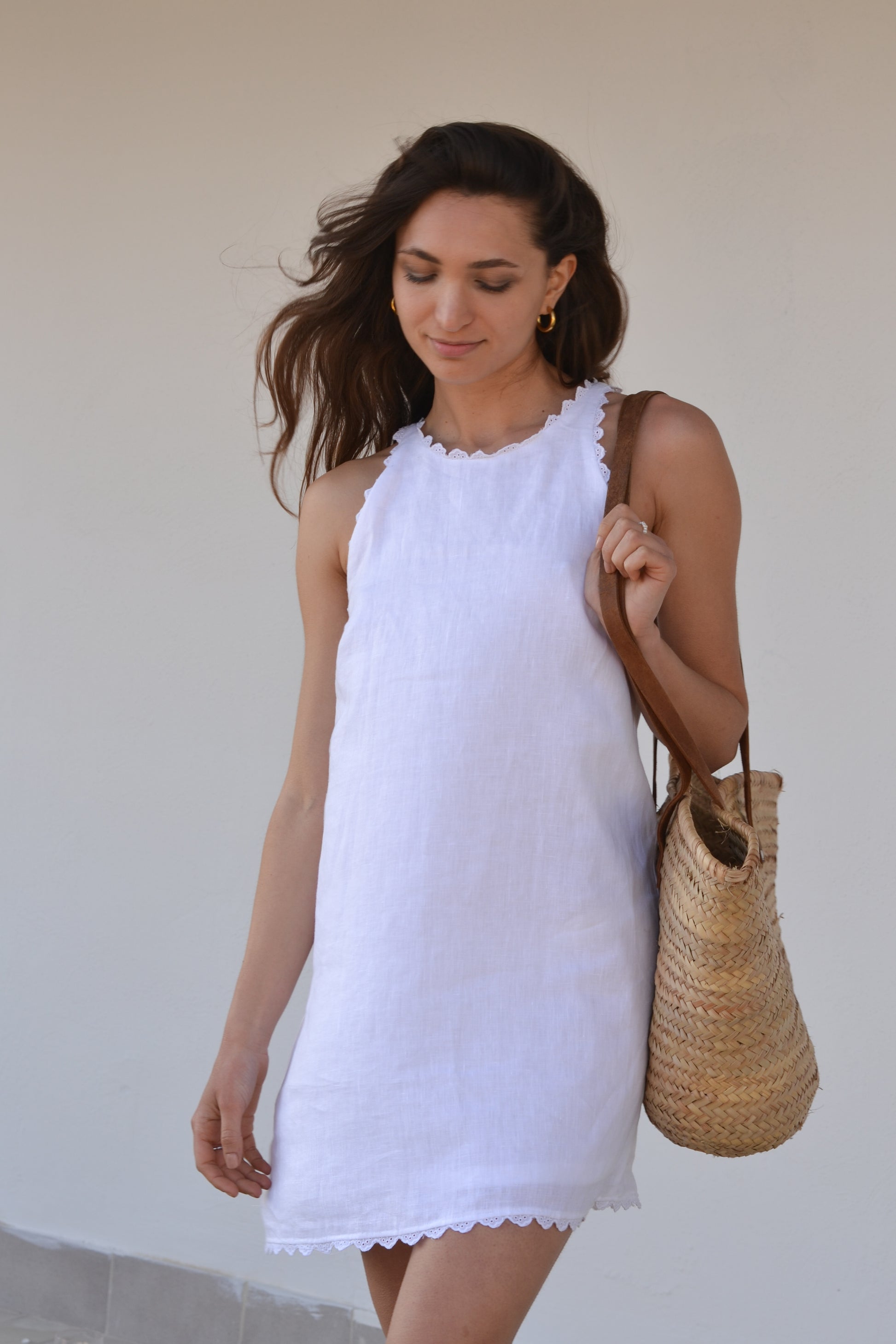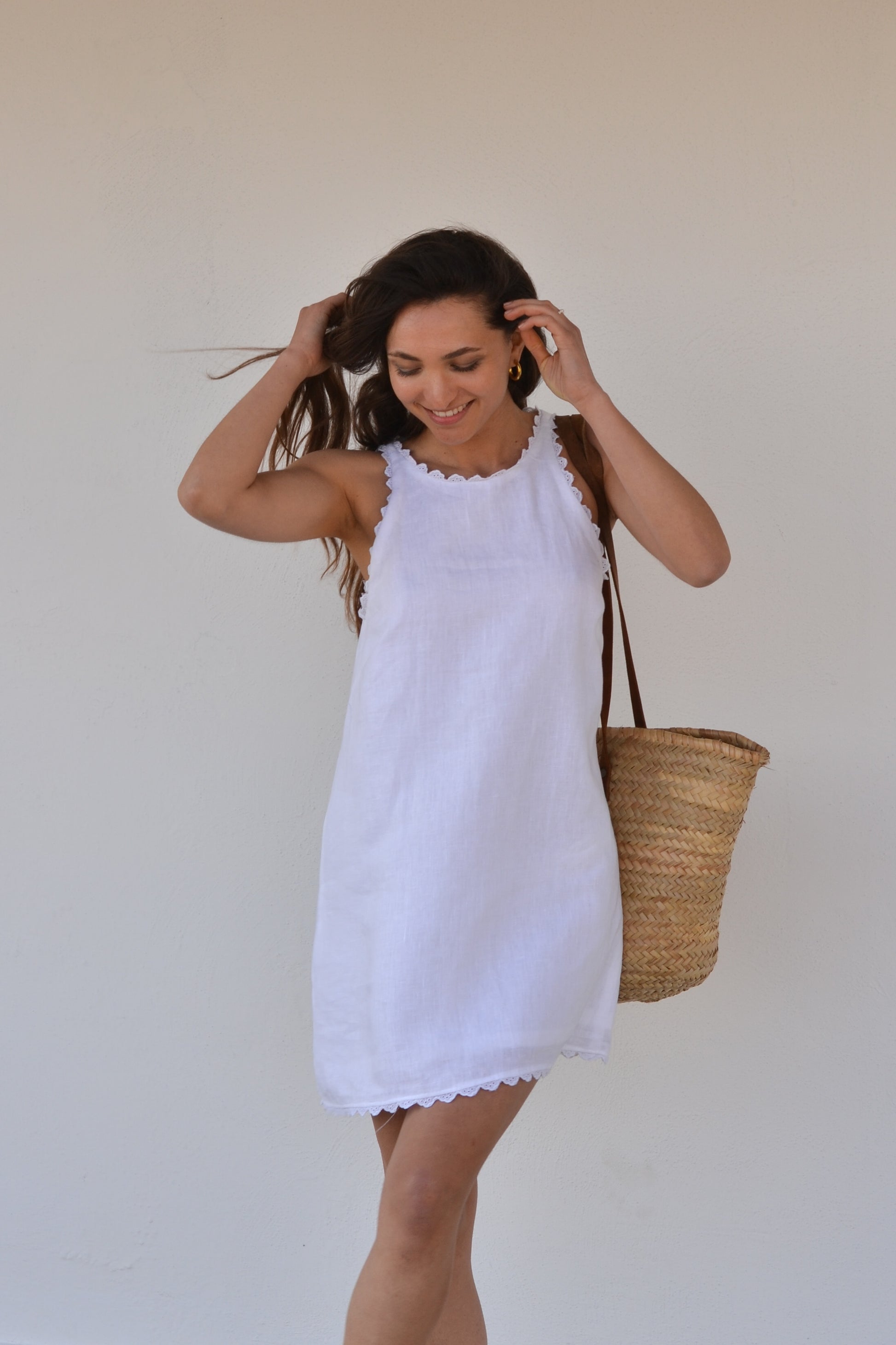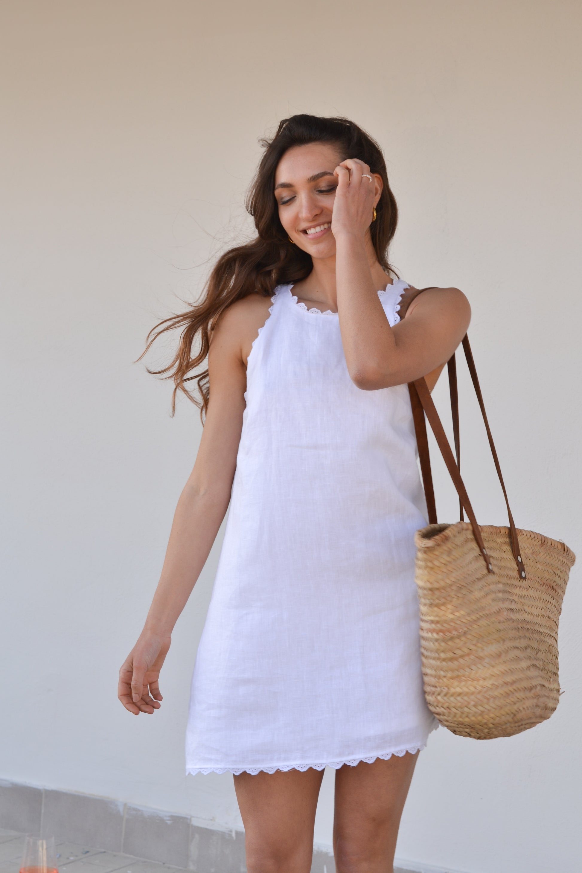 The Matilda Dress is handmade with 100% linen and has a chic embroidered finish. Also available as a top and bottom.