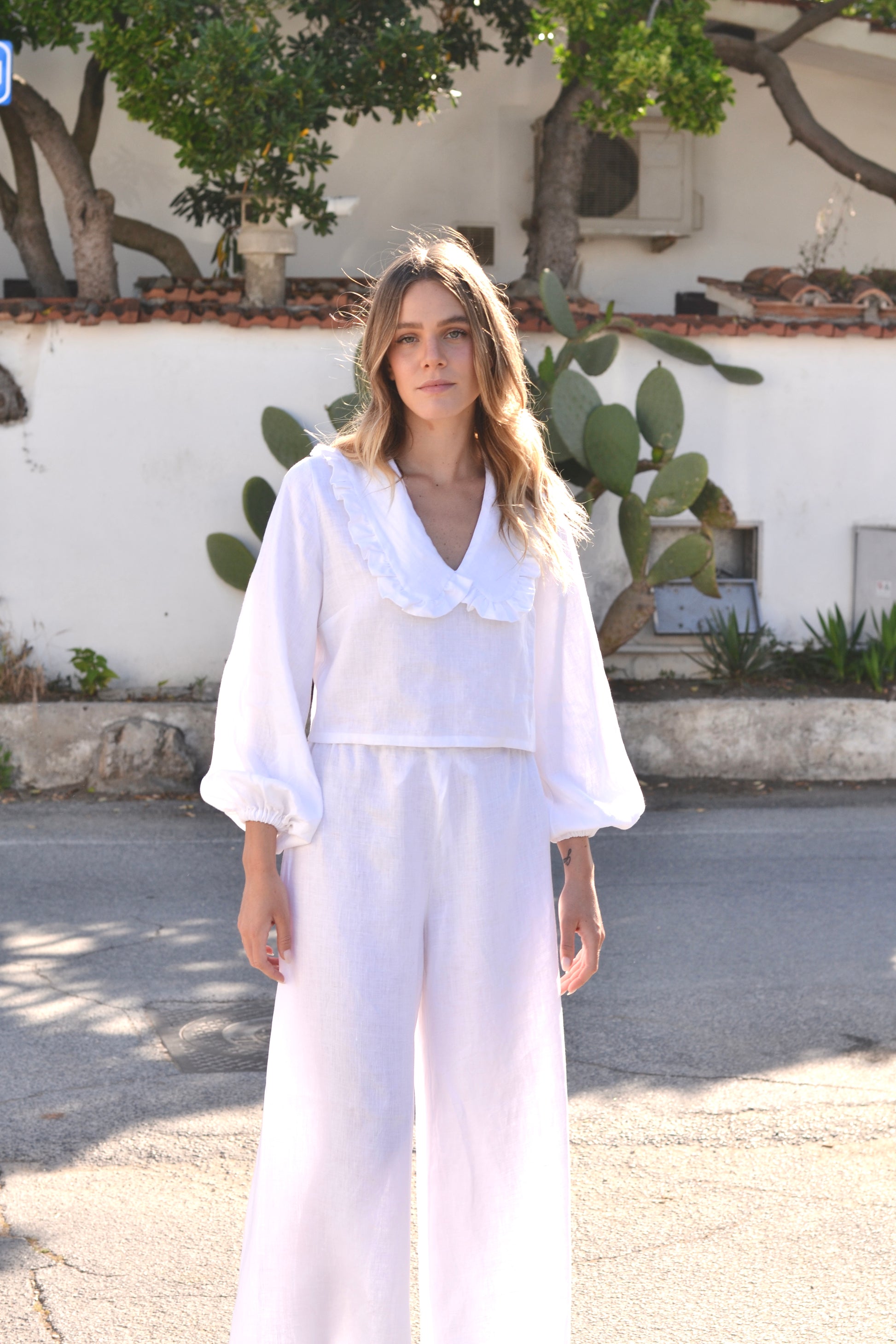 The Jade Pant is our classic linen pant. It features an oversized fit and an elastic waistband. Also available as a short.