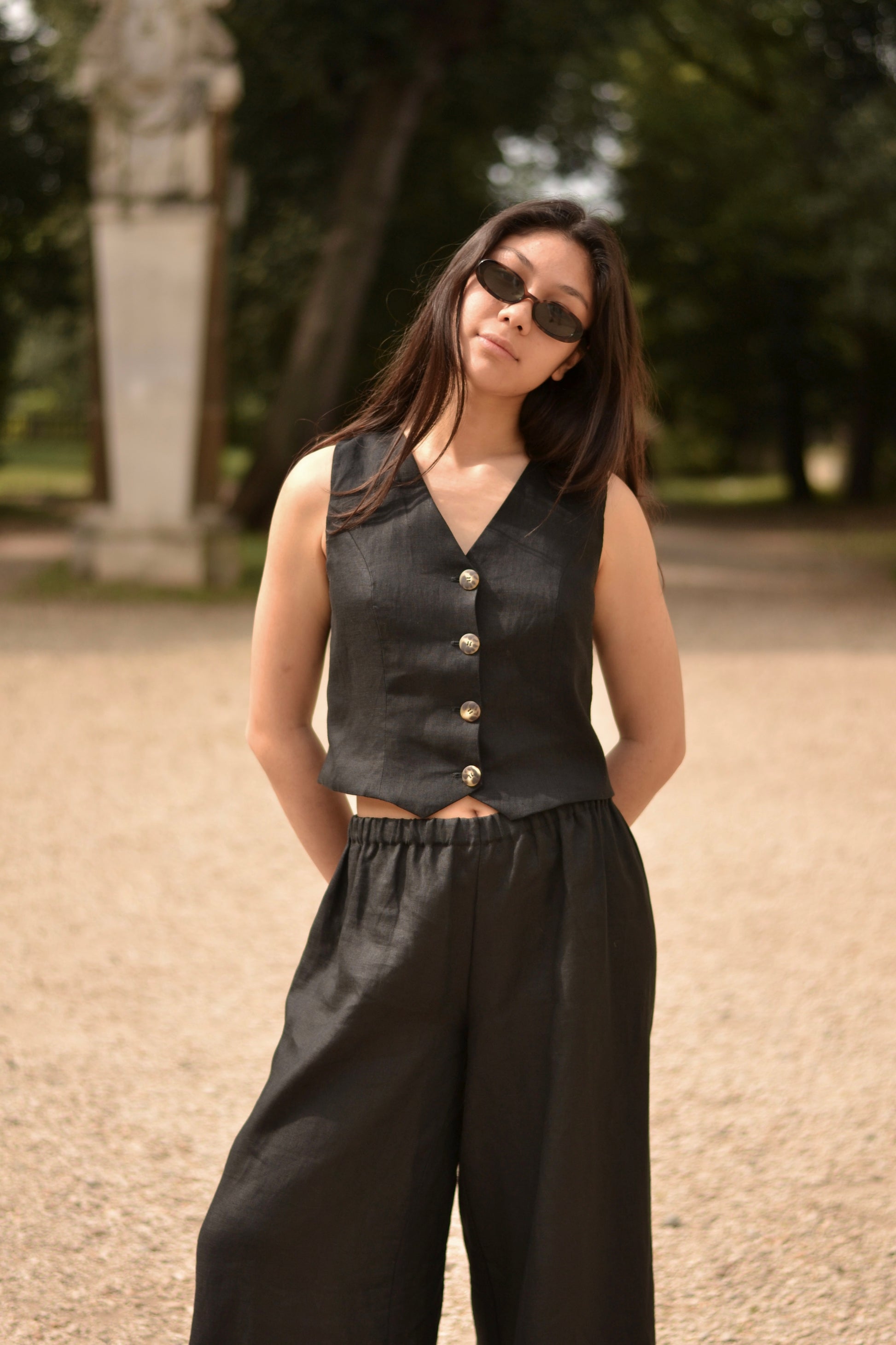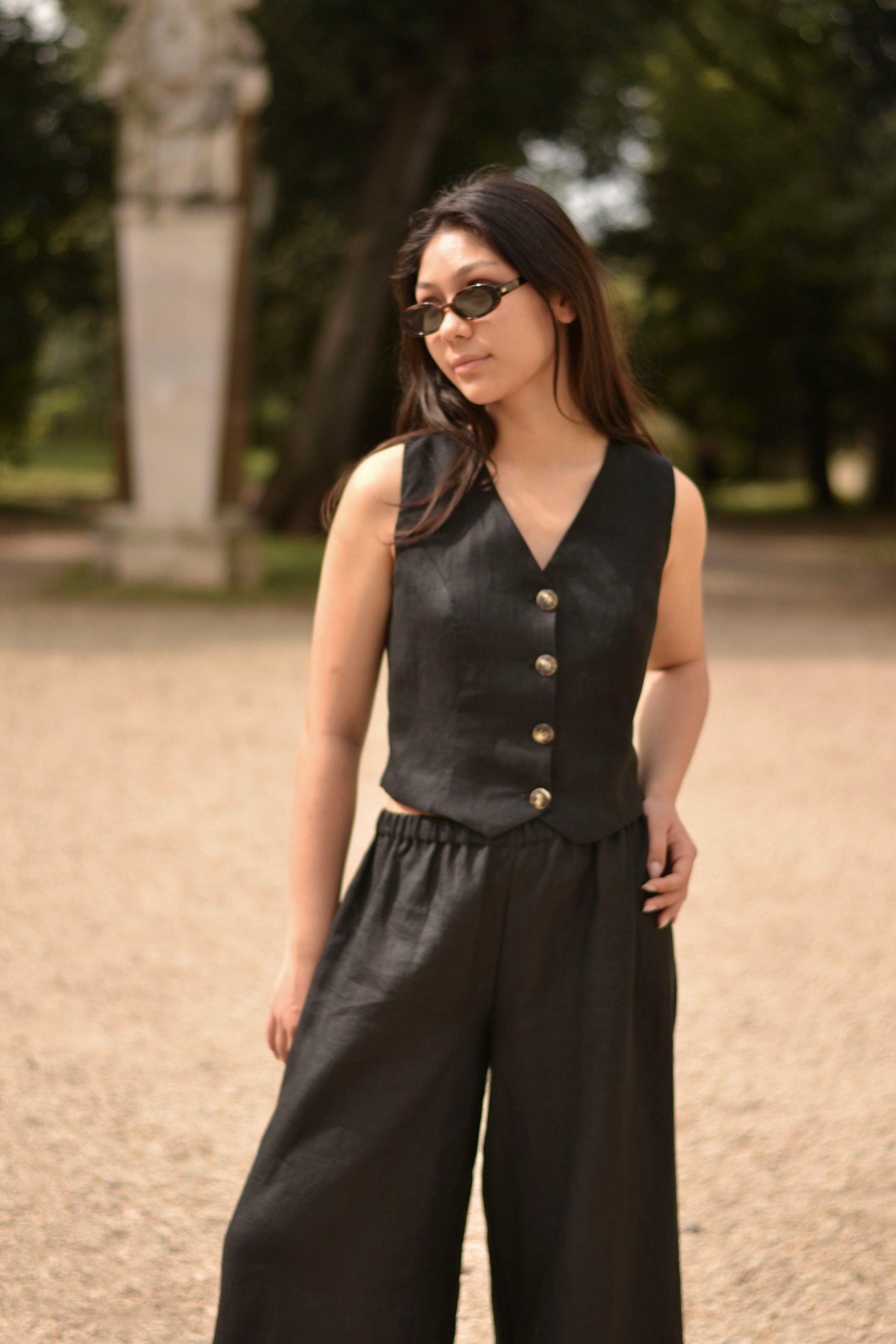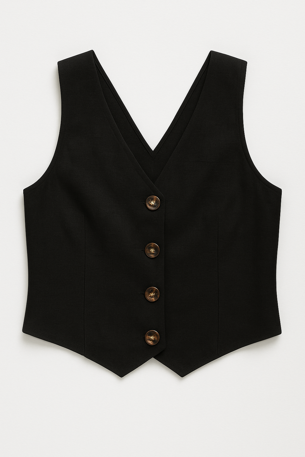 The Lia Vest has a feminine silhouette and a front button closure. A staple to your wardrobe, match it with our Jade short.