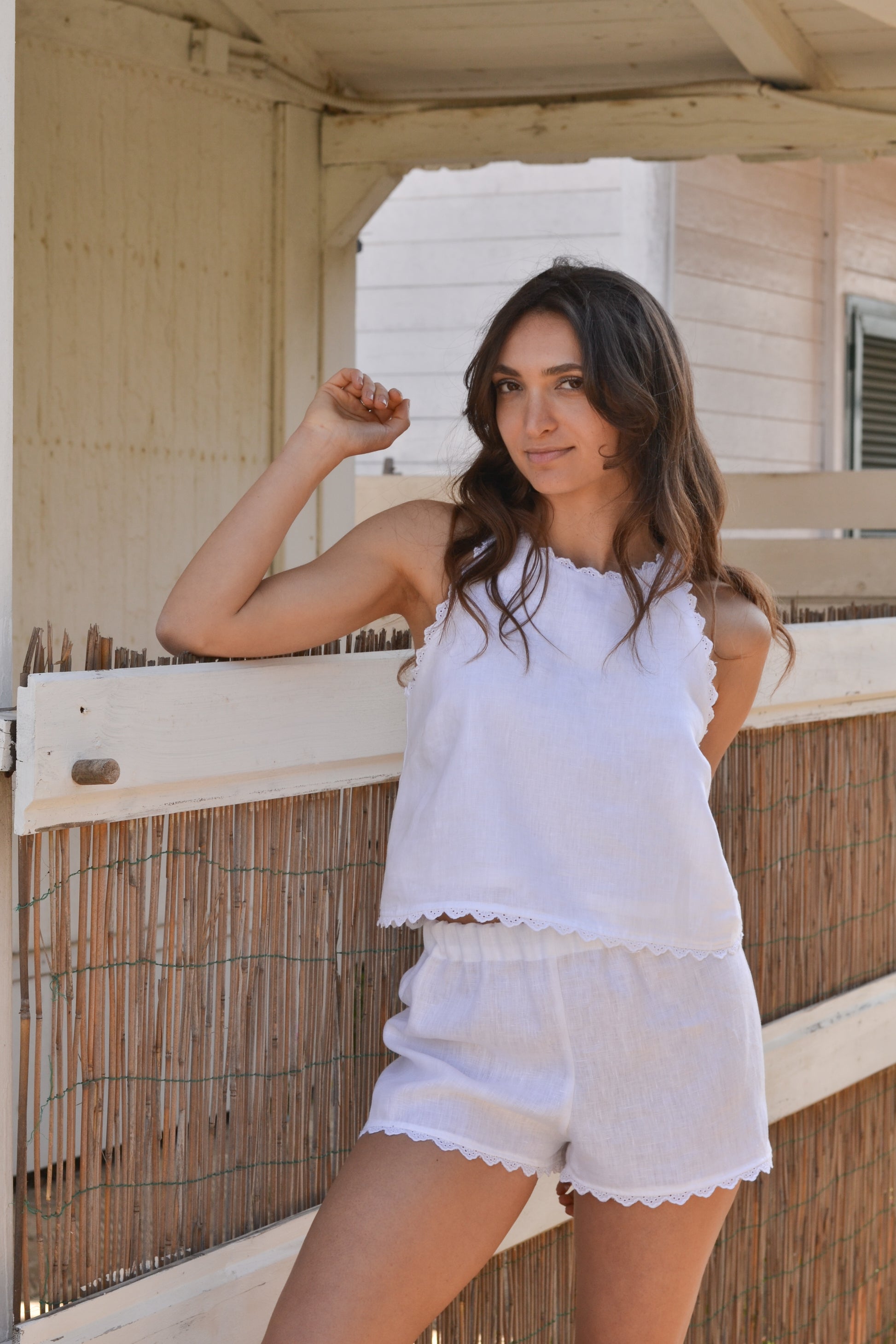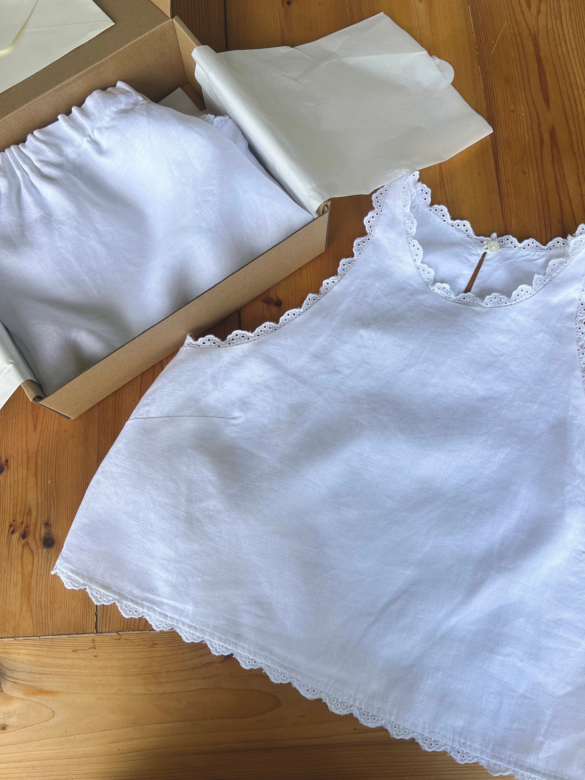 The Matilda Top is handmade with 100% linen and has an embroidered finish. Pair it with the Matilda short. Also available as a dress.