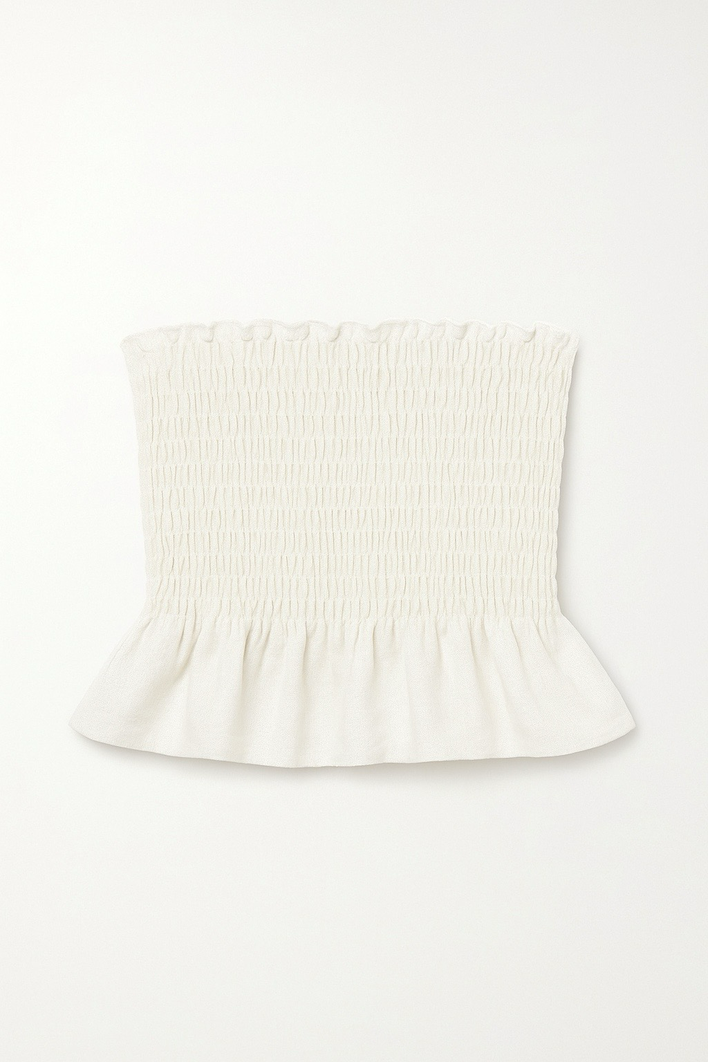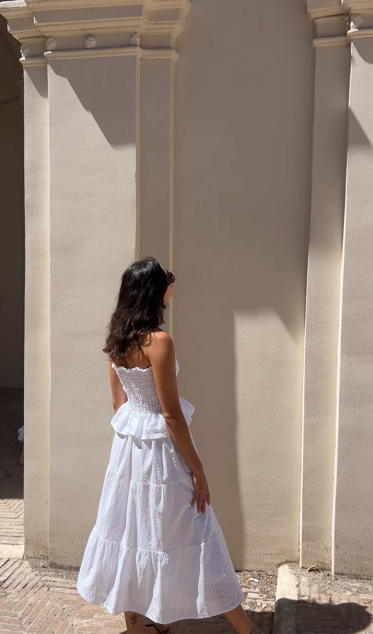 The Millie Top is a smocked strapless top with a subtle ruffle hem and a perfect staple piece for your wardrobe.