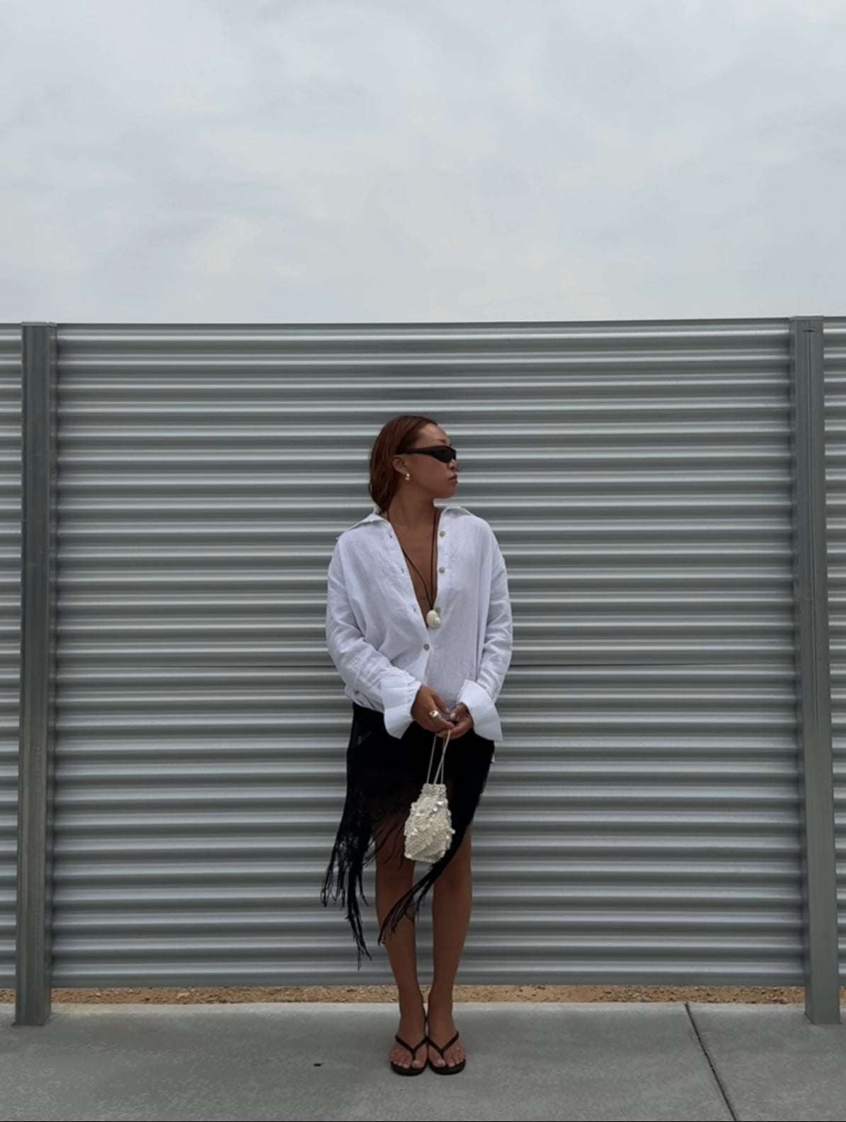 The Naomi Shirt is our classic shirt with an oversized fit and made from 100% linen. Pair it with the matching Naomi pant. Also available in blue.